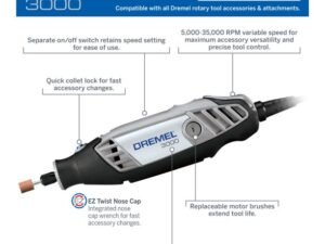 Dremel 3000-1/25 1.2 Amp Corded Variable Speed Rotary Tool, 1 Attachment and 25 Accessories