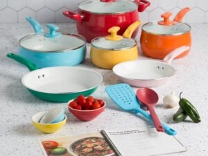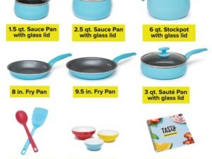 Tasty Ceramic Titanium-Reinforced Non-Stick Cookware Set, Multicolor, 16 Piece