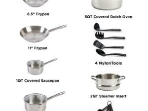T-fal Cook & Strain Stainless Steel Cookware Set, 14 piece Set