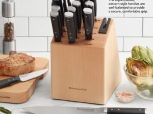 Kitchenaid Gourmet 14-piece Forged Tripe-Rivet Knife Block Set with Built-In Sharpener, Natural