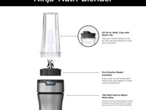 Ninja Nutri-Blender BN300 700-Watt Personal Blender, 2 Dishwasher-Safe To-Go Cups