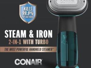 Conair Turbo ExtremeSteam 1875 Watt Handheld Fabric, 2-in-1 Steam and Iron Garment Steamer, One Size, Black/Green GS107