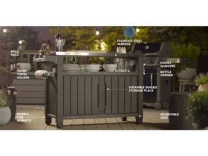 Keter Unity XL Portable Outdoor Table and Storage Cabinet with Accessory Hooks, Espresso Brown