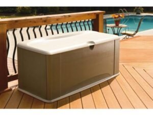 Rubbermaid 121 Gallon Resin Deck Box, Gray and Brown Size XL