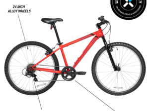 Decathlon Rockrider St100 Mountain Bike, 24″, Red, Kids 4’5″ to 4’11”