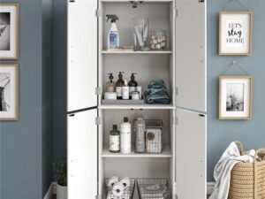 Mainstays 4 Door Storage Cabinet, White Stipple
