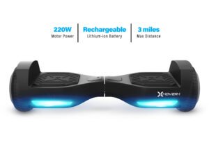 Hover-1 Rebel Kids Hoverboard w/ LED Headlight, 6 m Max Speed, 130 lbs Max Weight, 3 Miles Max Distance – Black