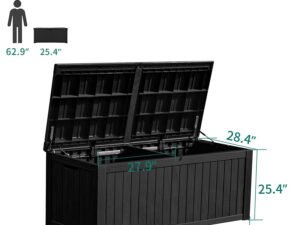 YITAHOME 150 Gallon Large Outdoor Storage Deck Box for Patio Furniture, Outdoor Cushions, Garden Tools, Sports Equipment and Pool Supplies with Flexible Divider, Waterproof, Resin, Lockable (Black)