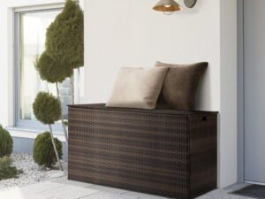 Teamson Home Wicker 154 Gallon Outdoor Deck Box for Cushions Storage, Brown