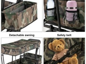 VEVOR Collapsible Wagon Cart Camouflage, Foldable Wagon Cart Removable Canopy 603D Oxford Cloth, Collapsible Wagon Oversized Wheels, Portable Folding Wagon Adjustable Handles, Beach, Garden, Sports