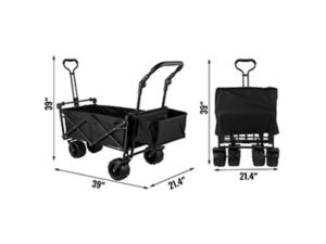 VEVOR Collapsible Wagon Cart Black, Foldable Wagon Cart Removable Canopy 602D Oxford Cloth, Collapsible Wagon Oversized Wheels, Portable Folding Wagon Adjustable Handles, Beach, Garden, Sports