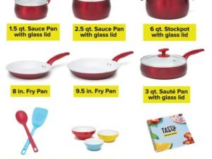 Tasty Ceramic Titanium-Reinforced Cookware Set, Red, 16 Piece