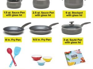 Tasty Non-Stick 16-Piece Cookware Set, Diamond-Reinforced, Dishwasher Safe, Ombre Gray