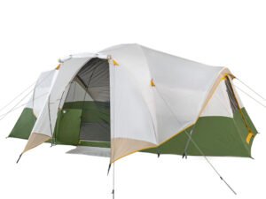 Slumberjack Riverbend 10-Person, 3-Room, Hybrid Dome Tent, Off-White / Green, with Full Fly
