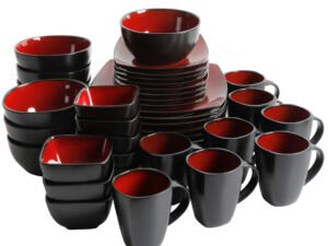 Gibson Home Soho Lounge Square Two Tone Red/Black Dinnerware Set, 40-Piece Set
