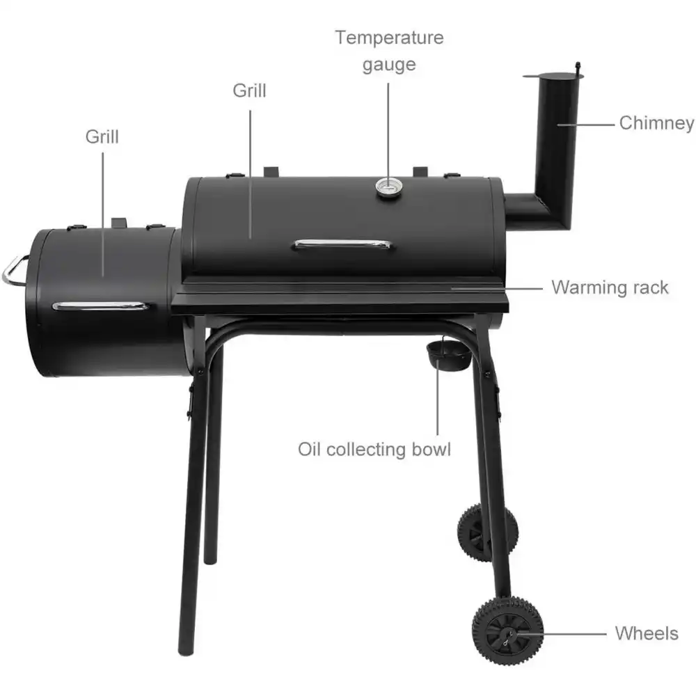 - Tasty Smoke Flavors: The offset smoker is firmly attached to grill to ensure good circulation of heat and smoke. Easy to open side door to add charcoal and remove ashes; air vent stokes fire instantly.