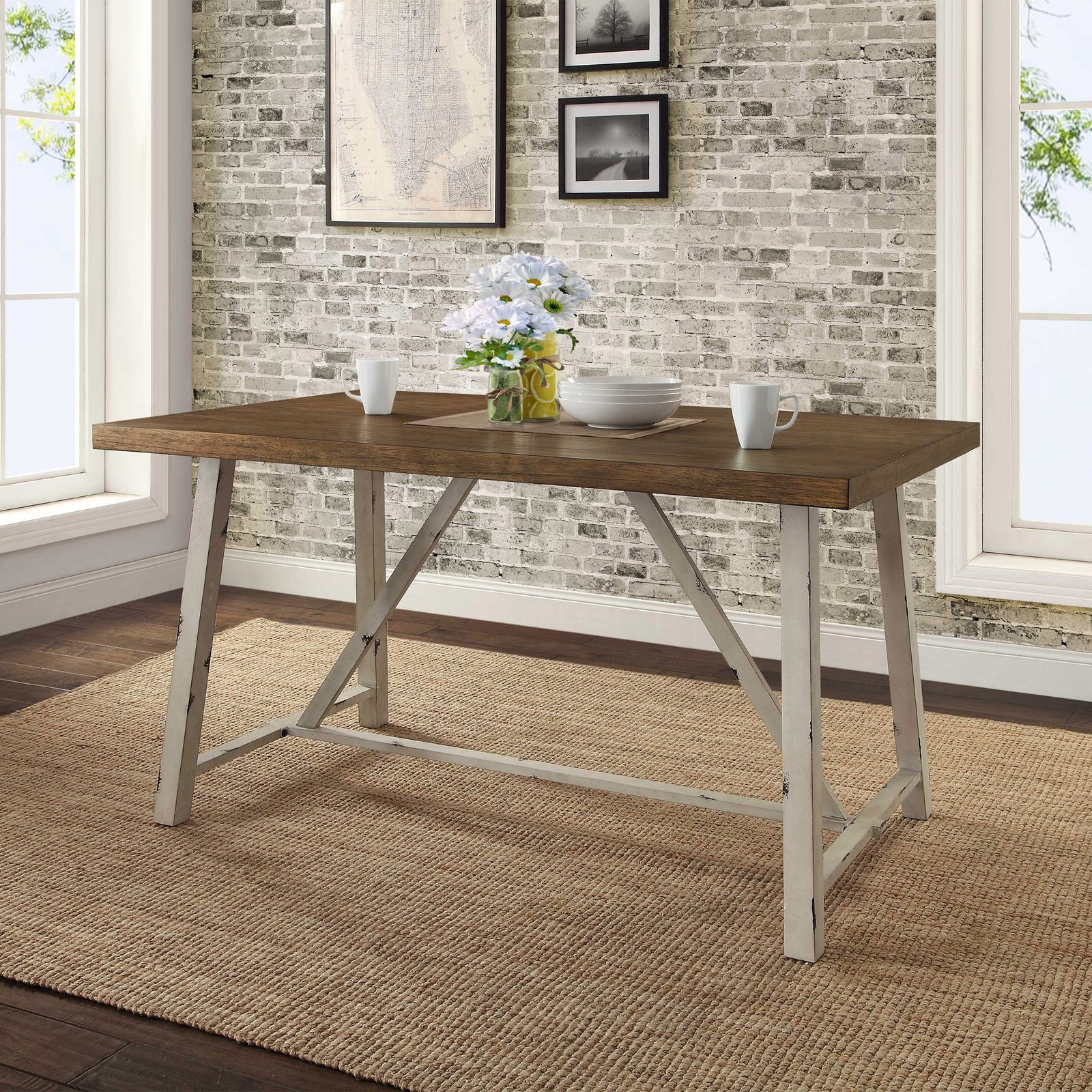 The Collin Dining Table from Better Homes & Gardens brings a contemporary twist to rustic construction. This stylish table combines provincial and contemporary into a modern design that is perfect for your kitchen, breakfast nook or dining room. It can even be used as a desk in your study or home office. The durable table features a multi-step wood tabletop with distressed white table base giving the table a simplistic yet stylish design. The natural finish pairs well with any most any existing interior decor or furniture style from rustic and traditional to contemporary and modern and all things in between. With comfortable seating for up to four people, this fabulous table is ideal for intimate gatherings and celebrations. It is easy to assemble so you can begin to enjoy it almost immediately. Combine with the Better Homes & Gardens Collin Dining Chairs (sold separately) to further complement your dining room.
