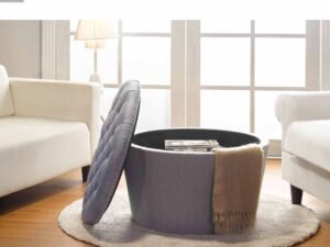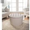 Add storage, style and extra seating in one with the Better Homes and Gardens Round Tufted Storage Ottoman with Nailheads. This versatile piece features an elegant design with a conical design and nailhead decor for a modern aesthetic. The Better Homes and Gardens ottoman features a tapered base and a chic tufted top in linen upholstery finished with nailhead trim for a rich, regal look. The top is generously padded for comfortable seating; it lifts easily to reveal a spacious, lined interior that can accommodate multiple bulky items easily. The upholstered ottoman is available in multiple colors.