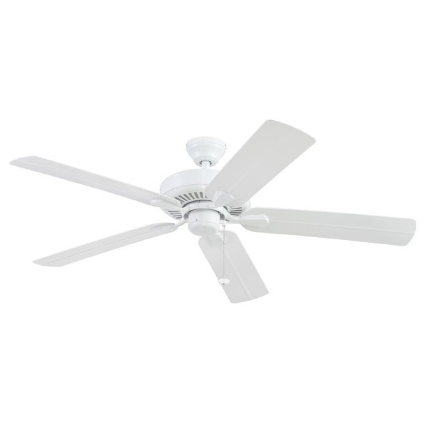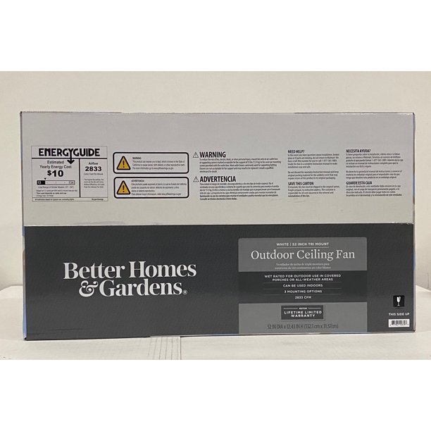 The Better Homes & Gardens 52″ Outdoor 5 Blade Ceiling Fan in White is the perfect addition to your outdoor space, serving up both adequate air flow and a classic, timeless style. With three pull-chain adjustable speed settings, this fan is sure to deliver a high quality, quiet performance while saving energy both in the summer and winter months. It is very easy to install and can be conveniently mounted in one of three ways: close, standard and angled. It is wet-rated and its five plastic blades are sure to withstand the elements. It is a great choice for large to medium size porches, patios, gazebos, breezeways, garages, balcony or verandas. You can even pair it with the classic Better Homes & Gardens White Glass Outdoor Ceiling Fan Light Kit to brighten and enhance your outdoor space even more! This fan is also available in Oil-Rubbed Bronze and backed by a limited lifetime warranty.