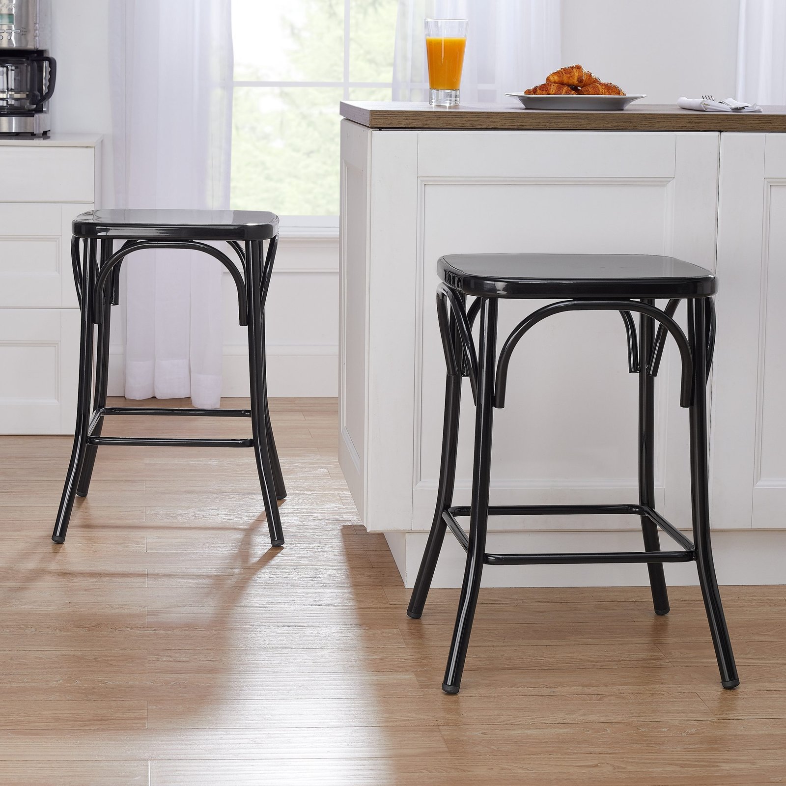 Sleek and modern, the Better Homes & Gardens Matilda Backless Counter Stool is the perfect match for a bistro, casual, or modern dining set. This attractive seating option features durable powder-coated steel construction for reliable seating year after year. Crafted with a backless design, these versatile stools welcome your family, friends, and neighbors to your home. Sold individually and ready to use with no assembly required, the Better Homes & Gardens Matilda Backless Counter Stool makes a stylish addition to your dining room, eat-in kitchen, bar area, or patio. Available in Gray, Sage, Black, and White.