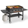 Two independently controlled H-style burners produce 24,000 BTUs of heat 339 square inches of cooking surface Griddle cover included Easy portability