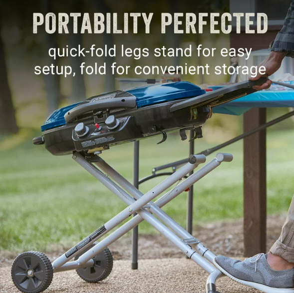 Rule the campground, park, or the parking lot when you fire up your Coleman® RoadTrip® X-cursion™ Propane Camping Stove. This portable grill with collapsible steel scissor legs and a low-profile design make moving it around as easy as flipping a burger, while the rugged, off-road wheels handle almost any terrain. Once you’re at your grill site, 285 sq. in. of porcelain-coated, cast iron grills are waiting for anything you can throw at them. Just hit the Instastart™ push-button ignition and dial in your heat with the two independently adjustable burners. Turn up the heat with 20,000 BTUs of grilling power that delivers it consistently across the grill surface thanks to the Even-Temp™ burners. If you’re looking for more meal options, the Swaptop™ interchangeable cooktops let you change out one of the grill grates with a griddle or stove grate (both sold separately). When it’s time to head home, the DripTrap™ removable water pan catches all the grease for easy cleaning before you go. Fold this grill up and it will store out of the way until you head out to your next summer cookout.