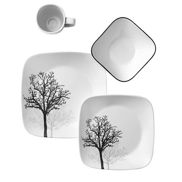 Upgrade your table setting to make meals look more appealing with this Corelle Square Timber Shadows 16-piece Dinnerware Set. This package includes a full arrangement for four diners. The Corelle square dinnerware set includes large plates, small plates, 22-oz bowls and 12-oz porcelain mugs. All of these are not just for presentation and dining purposes but are also safe to be placed in the dishwasher, refrigerator, pre-heated oven and microwave. The beautiful patterns are versatile and will blend in nicely with most dining room interiors. The Timber Shadows dinnerware set’s designs and patterns will not scratch, wear or wash off. They are also made of a lightweight and chip-resistant material. The Corelle Square Timber Shadows 16-piece Dinnerware Set’s aesthetic evokes the feeling of walking through a park in early spring.Includes 4 each of 10-1/2″ plates, 9″ plates, 22-oz bowls and 12-oz porcelain mugs