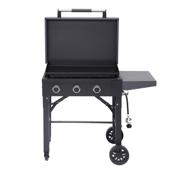 Get ready to be the star at your next backyard barbeque with the Expert Grill Pioneer 28-Inch Portable Gas Griddle. The Walmart exclusive 28-inch griddle features 409 square inches of thick cold-rolled steel griddle surface for excellent heat retention and distribution. This gas griddle offers a versatile cooking system, perfect for pancakes, steaks, hamburgers, bratwurst, veggies, or fried rice- the possibilities are endless. The stainless-steel H-Burner design results in uniform heat across the griddle, and the independently controlled stainless steel burners allow you to control the cooking experience and cook multiple items at once. The handy fold-and-go design makes the griddle portable, and the thick cold rolled steel and hinged hood helps retain heat. With all this griddle can do, you’ll want to take it with you on all of your camping, hunting, boating, fishing, and tailgating. Whether you’re cooking for a large group or a small dinner gathering, you’ll be a master of cooking a huge variety of foods in minutes with the Expert Grill Pioneer 28-Inch Portable Gas Griddle.
