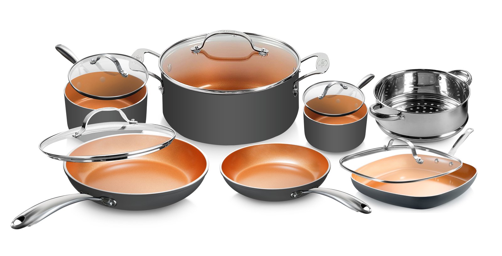 Gotham Steel Diamond 12-Piece Cookware Set with Non-Stick Ti-Cerama Copper Coating, Includes Skillets, Frying Pans and Stock Pots, Dishwasher and Oven Safe, Stainless Steel Handles, Graphite