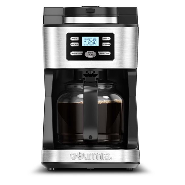 A good day starts with the perfect cup of coffee. You need a coffee maker that’s as flexible as you are, and this Gourmia 12-Cup Programmable Grind & Brew Coffee Maker is up to the task. When you just need a cup of coffee in the morning, the last thing you want to do is pull out the grinder and blitz your beans to the right size. This Grind and Brew Coffee Maker with built-in grinder is here to make your mornings, days, and nights easier. The integrated grinder, with adjustable grind size, produces uniform size grinds while maintaining the flavor and aroma of the beans to make for the perfect cup of coffee. You can also brew your favorite pre-ground coffee, with the Grind Off Feature. Its easy-read display makes it easy to program, and the adjustable 4-hour keep-warm ensures hot coffee is ready when you are. The water window provides convenient water level monitoring. Features a sleek, durable, and modern design, with stainless steel accents, and 12-cup glass carafe. With the Gourmia Grind & Brew Coffee Maker with built-in grinder, save time and space and enjoy consistently fresh and delicious coffee, cup after cup.