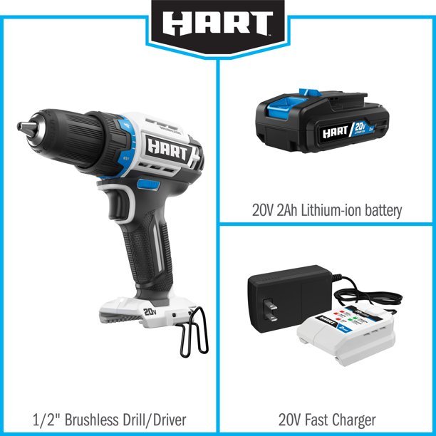 The HART Brushless ½-inch Drill/Driver is the perfect tool for all of your drilling and driving needs. This drill is equipped with a powerful brushless motor and ½-inch chuck offering a large variety of accessories for both light and heavy-duty applications. This brushless motor is 30% more powerful and 20% faster at up to 1,800 RPM. The 24-position clutch coupled with the 2-speed gearbox puts more control in your hands when drilling through material or driving fasteners. This drill features on-board bit storage and an LED work light for enhanced visibility. This drill operates on and comes with a HART 20V Lithium-Ion battery that provides fade-free power to get you through your project with confidence