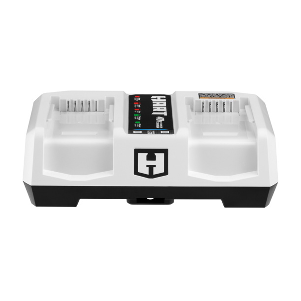 Quickly charge your HART 40V batteries 2X faster with our HART 40V Dual Port Fast Charger! (Compared to HLCG011). This charger will sequentially charge up to two HART 40V batteries. Now you can have multiple 40V batteries fully charged and ready to tackle your yard tasks. In other words, you can do more with less interruption. To go from mowing the lawn to trimming the hedges, simply swap batteries and go. The LED indicators let you know which battery is charged and which one is still charging. And The charger is compatible with all HART 40V batteries. With optional wall mounting key holes, this charger is perfect on your wall or your workbench. Includes 40V HART Dual Port Fast Charger, owner’s manual, and limited 3-year warranty. Keep your batteries charged and ready when you need them most with HART.