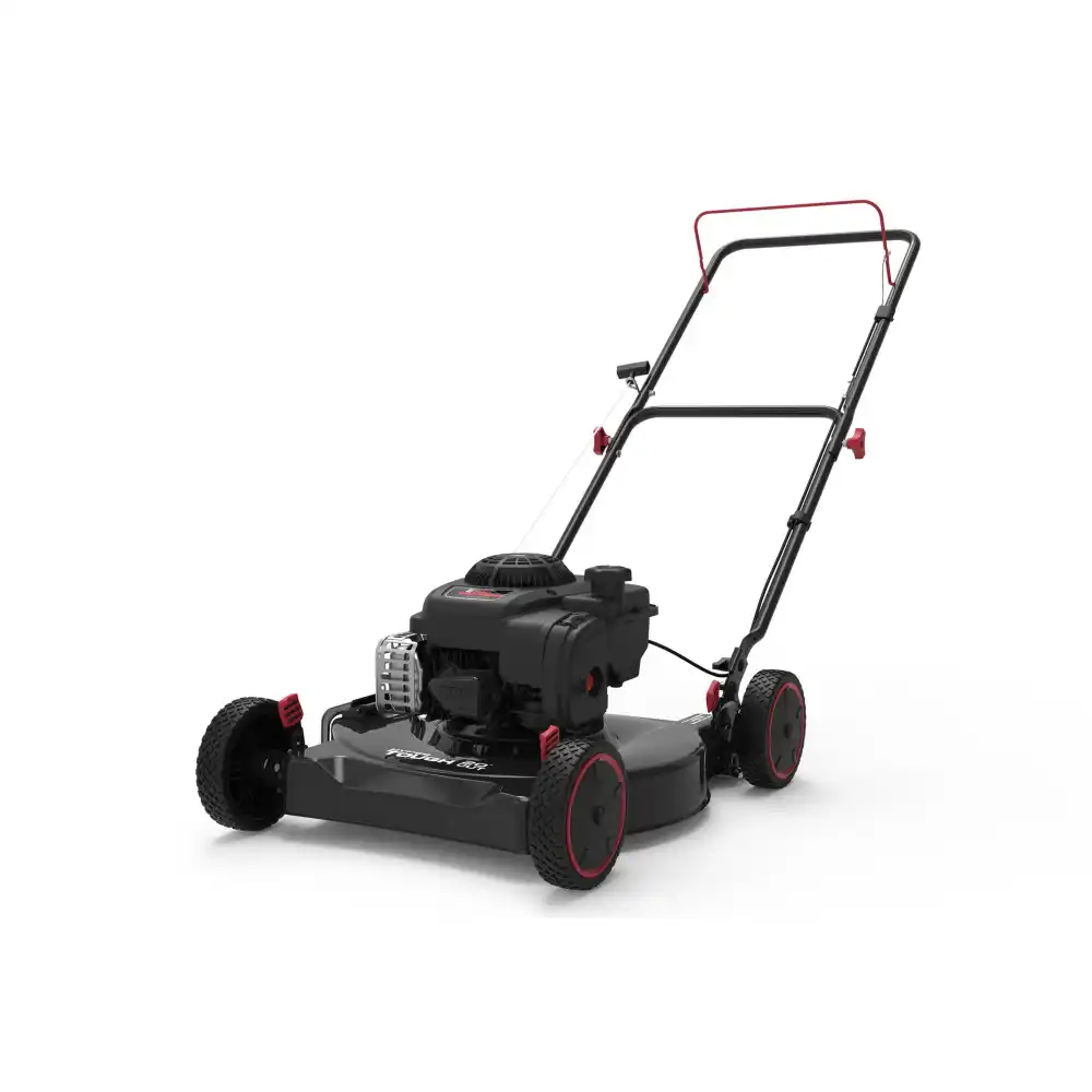 The Hyper Tough 20″ Gas Push Lawn Mower is a powerful, reliable machine that provides a great cut. The Prime N Pull feature makes starting this lawn mower a breeze. The powerful 125cc Briggs & Stratton engine provides plenty of power to get the job done fast. The mower assembles in 5 minutes and is designed for great balance and low vibration to make yardwork simple and comfortable. The handle folds down for convenient storage when not in use. The Hyper Tough mower has a 20-inch cutting deck made with durable steel and a side discharge chute that disperses grass clippings evenly, adding vital nutrients back into the lawn. This nimble mower provides precise cutting and is adjustable to five cutting heights to meet your needs. The economical Hyper Tough push lawn mower is suitable for small to medium sized yards that are mostly flat. Assembled Product Dimensions 28.4″ x 22.1″ x 14.6″