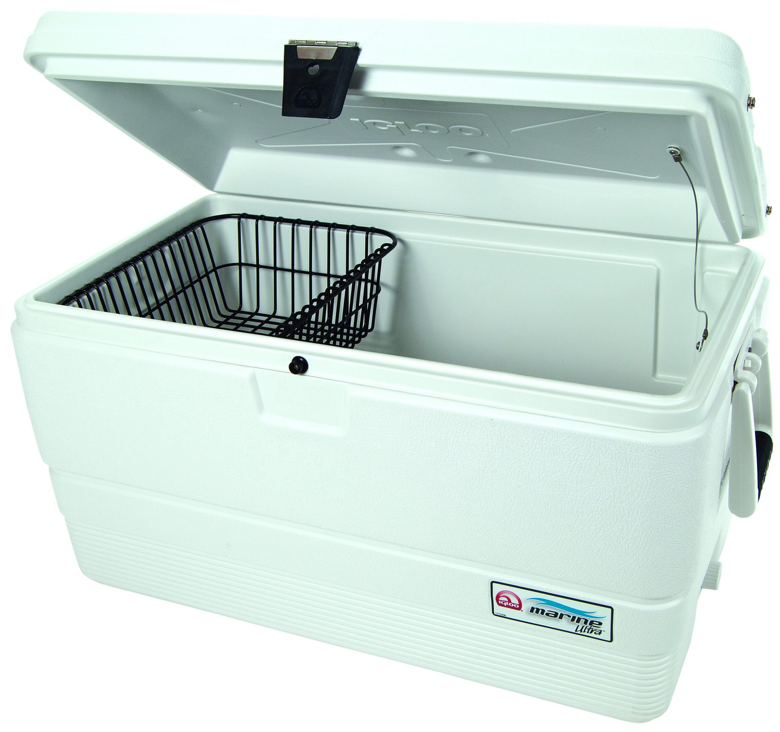 The Igloo® Marine Ultra 72 Quart Cooler is the perfect companion to have for a day of fishing. It?s designed with Cool Riser Technology® to maintain cold temperatures, UV inhibitors for sun protection, and a non-slip handle with molded-in side handles. The Marine Ultra can keep ice cold up to 3 days. It?s lightweight, durable, and easy to clean after a day on the boat.