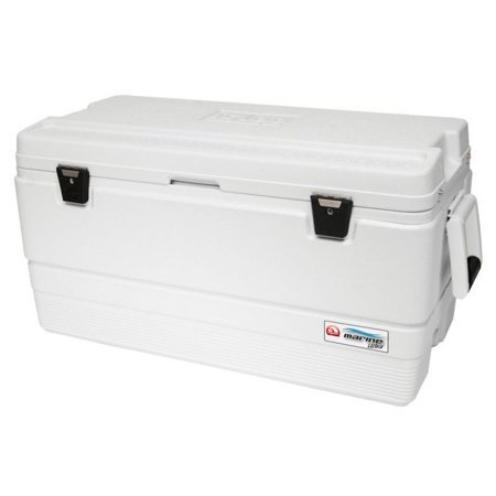 The Igloo® Marine Ultra 94 Quart Cooler is the perfect companion to have for a day of fishing. It’s designed with Cool Riser Technology® to maintain cold temperatures, UV inhibitors for sun protection, and a non-slip handle with molded-in side handles. The Marine Ultra can keep ice cold up to 3 days. It’s lightweight, durable, and easy to clean after a day on the boat.