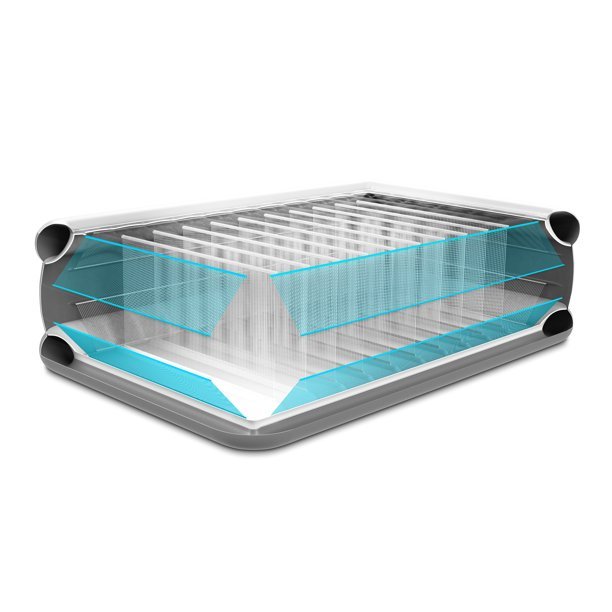 Give your guests a good night’s rest with the Intex Queen 24″ Dura-Beam Dream Lux Pillow Top Airbed Mattress. The soft pillow top, horizontal beam construction, and textured outer layer provide added comfort and support, while the high-strength internal construction provides unmatched support, keeping the bed sturdy and comfortable. The Flocked sides are more puncture and abrasion resistant and the unique edge construction offers more sleeping space and mattress stability.