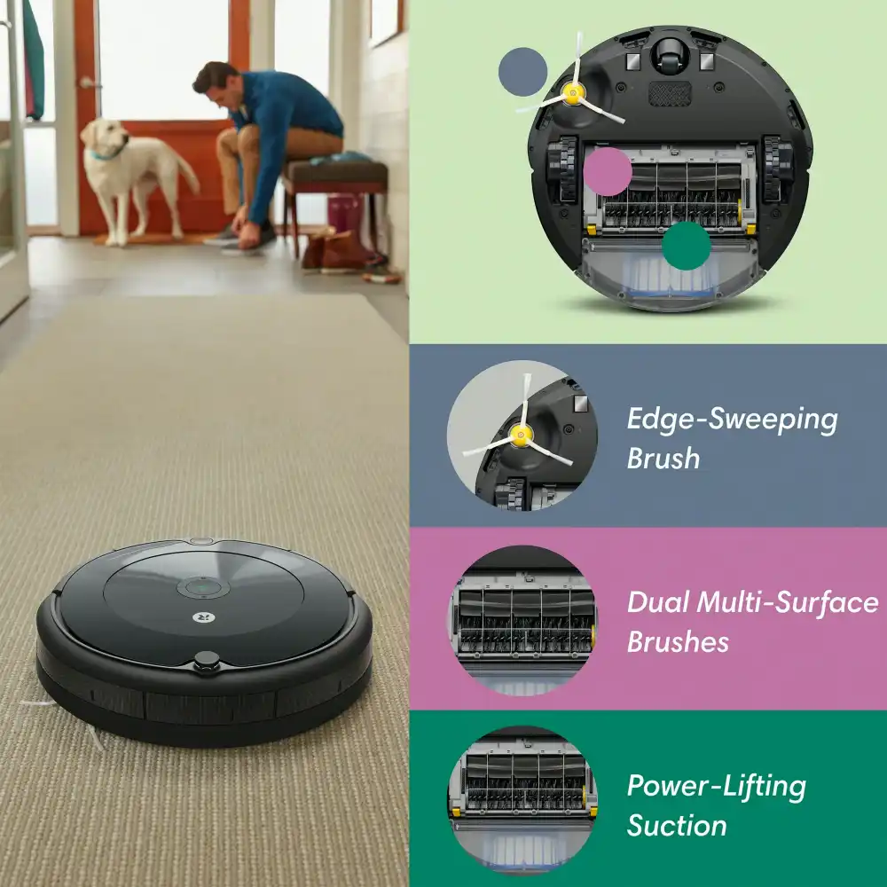 The Roomba® 600 series robot vacuum is a great way to begin cleaning your home smarter. It learns your cleaning habits and then offers up custom cleaning schedules—taking on daily dirt, dust, and debris from carpets and hard floors. It even has an edge-sweeping brush to get into corners and along edges. Google Assistant let you start a cleaning session with just your voice, or simply use the iRobot Home App. When your area’s pollen count is high or during pet shedding season, the Roomba® 600 series robot vacuum can even suggest extra cleanings —to help keep your floors clean every day of the year.