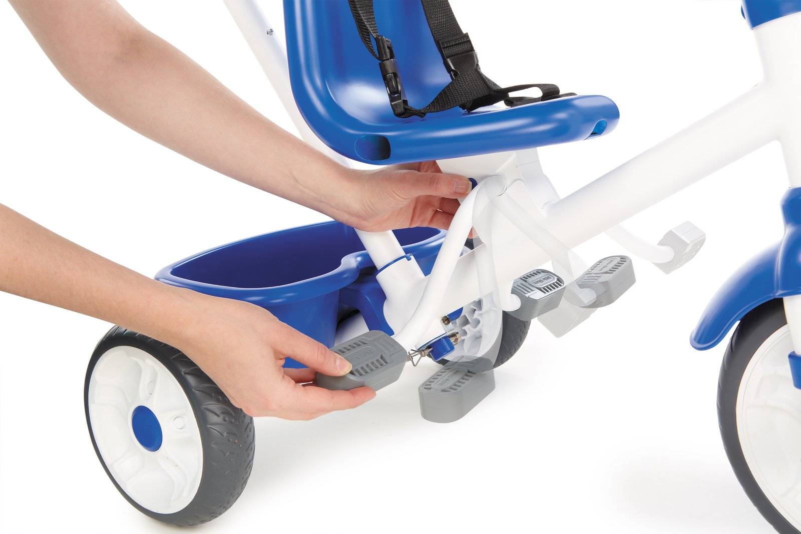 My First Trike 4-in-1 Trike grows with your child! Parent pushes and steers; but, as the child grows, the parent can steer while the child pedals. When toddlers learn to pedal the bike,parents can remove the waist bar and now the child can steer. Last stage is when the child pedals and steers all on their own!