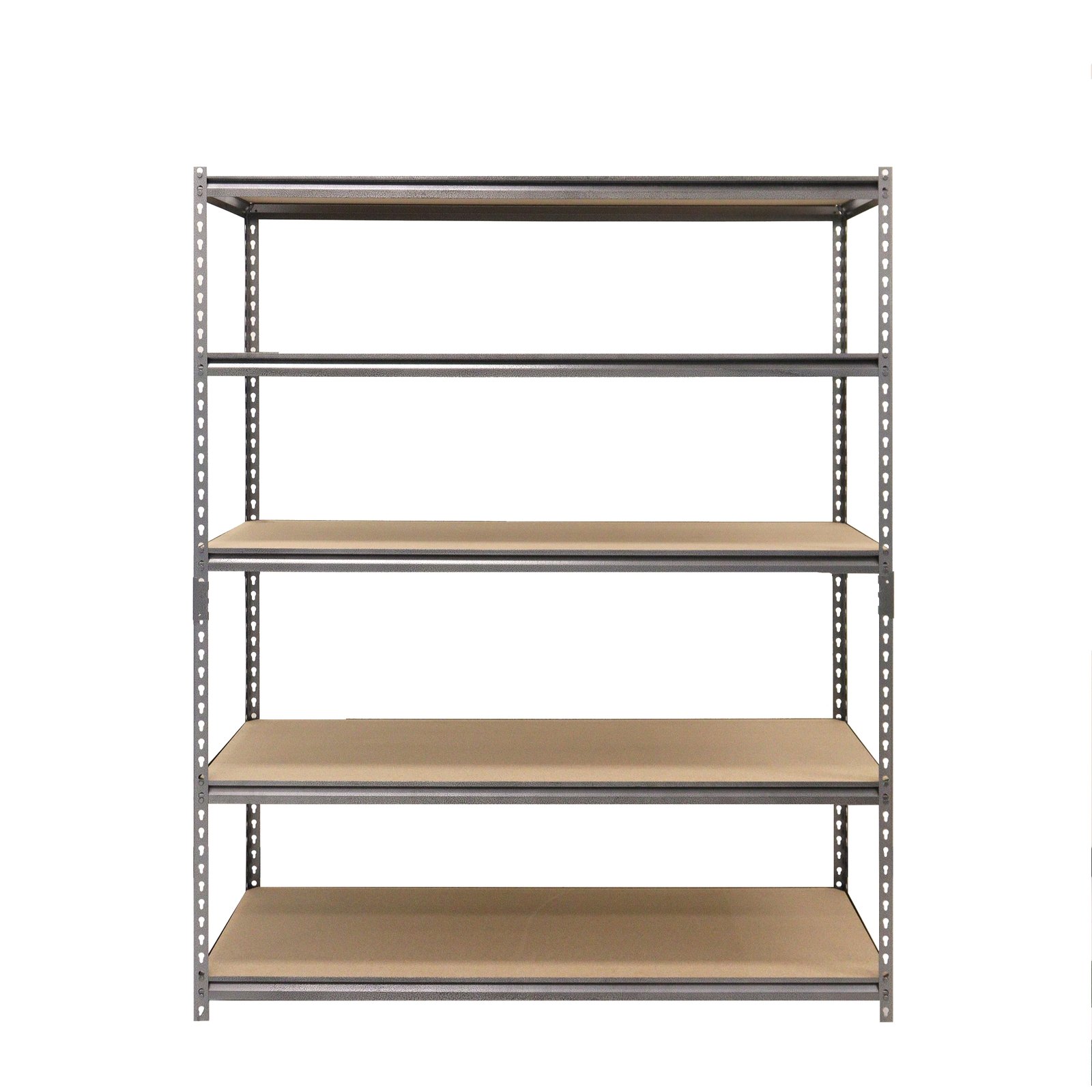 The Muscle Rack heavy-duty 5-shelf steel shelving unit with its patented design and attractive silver finish is the perfect storage solution for organizing bulky items in your basement, workshop, garage, business, or anywhere you need heavy-duty vertical storage.Its sturdy frame has a powder coat finish that resists abrasion, chipping, and corrosion for lasting strength and durability. This versatile shelving unit can store a variety of items, large or small, with the convenience of shelves that are adjustable every 1.5 inches. Heavy items are no problem; each sturdy particleboard shelf holds up to 800 pounds of evenly distributed weight.