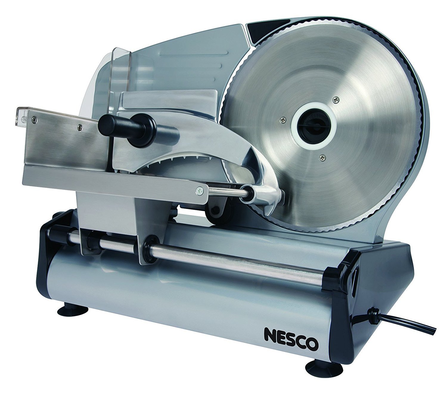 In the FS-200 Nesco has combined an elegant design with the performance of a powerful food slicer. Slice meat, cheese, bread, vegetables and fruit quickly and easily with this quality slicer. Its features include precision depth control and a strong, high quality 180-watt gear motor. With a variable thickness control knob for a 9/16″ thickness range, its large multipurpose 8.7-inch stainless steel hardened serrated blade handles a wide range of food sizes and shapes.