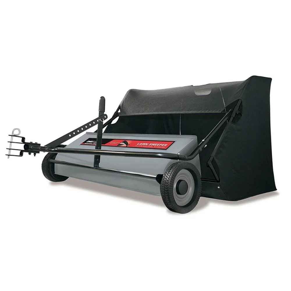 This professional grade Ohio Steel Lawn Sweeper features an extra-large capacity 22 cu. ft. heavy-duty collector bag and a 42 in. sweeping path allowing you to get your lawn care finished quickly. The exclusive patented spiral brush sweeps more efficiently than standard sweepers and puts less stress on gears for longer life. “No-slip” positive lock height adjustment will not vibrate out of position and has easy-to-remember height settings. Hopper empties by pulling rope from the seat of your tractor – just reverse to debris or compost area, pull the rope and you’re done! Extra-wide 9 in. chute is less likely to clog, especially when sweeping damp grass clippings that can clump together. 3-position hitch adjustment allows for efficient level operation with any tractor hitch height – without the use of easy to lose spacer rings! The sweeper stands upright and bag folds for compact storage. For over 50 years Ohio Steel has manufactured high-quality, innovative tractor and ATV attachments that help get the job done faster and with less effort. 42 in. sweeping width; 22 cu. ft. capacity hopper 11 in. spiraled polypropylene brushes – an Ohio Steel patented exclusive feature 4.5 to 1 brush to wheel turning ratio 11 in. semi-pneumatic wheels Sealed ball bearings on brush axle Sealed ball bearings on brush axle Gray and black powder-coat finish Hitch pin included 3 year limited warranty