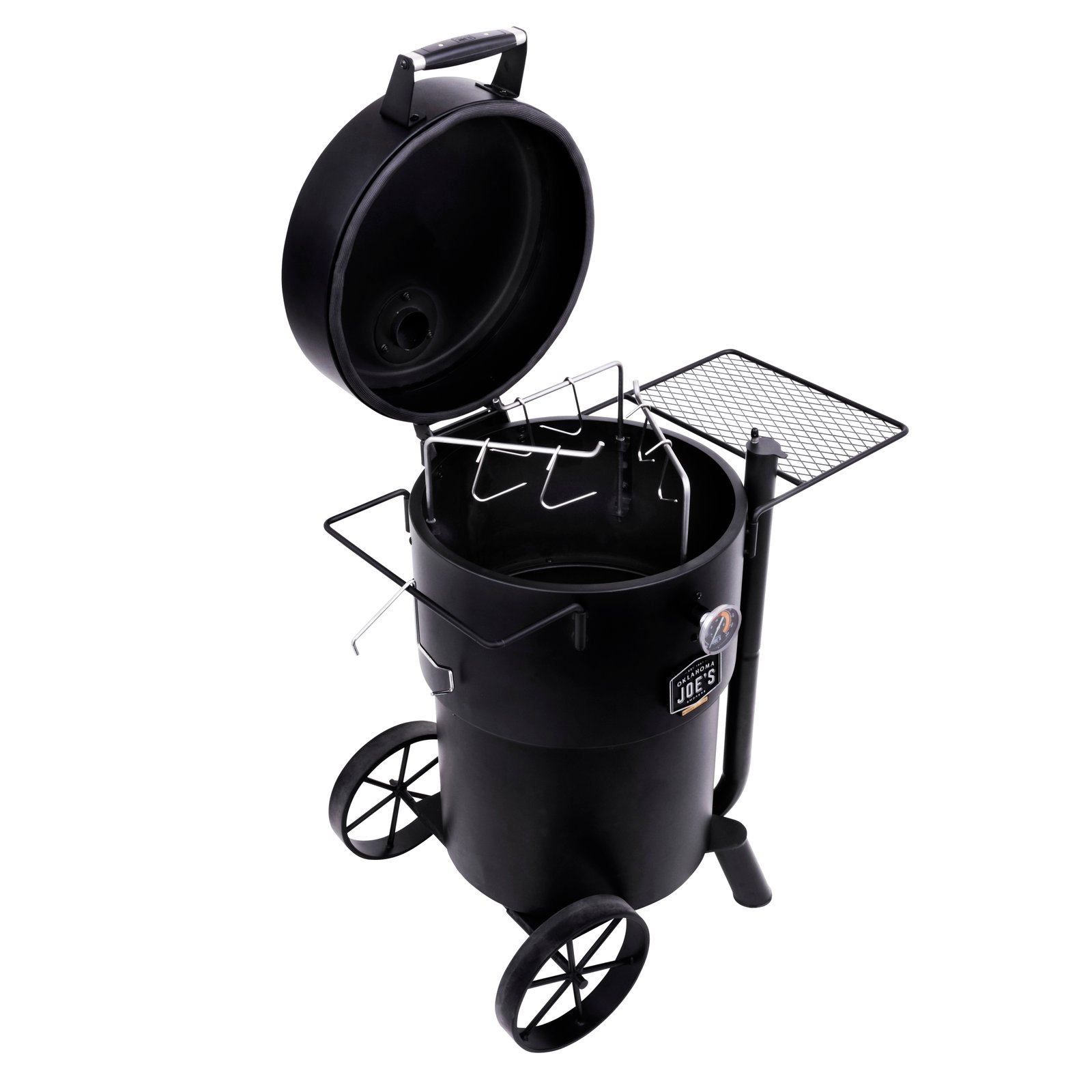 - Cooking grate and meat hangers enable a custom smoking setup
