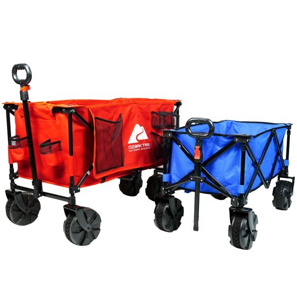 When you are heading to the beach, tailgating, camping or any other outdoor activity, figuring out how to transport everything you need can be difficult and time consuming. But not anymore, with the Hazel Creek Extra Large Wagon. Measuring 40″ x 22″ x 35.5-50.5″ with a steel tube frame with powder coating, this wagon is large and durable enough to haul all your important items, including chairs, umbrellas, tables and anything else you need for your next outdoor excursion. It also features side organizers for extra storage and doubles as a carry bag so you can easily transport the wagon to and from the campsite or anywhere else. And with its durable all-terrain wheels and ergonomic adjustable handle. Whether you are camping or tailgating, the Red Ozark Trail Hazel Creek Extra Large Wagon will help make your next outdoor adventure even easier.
