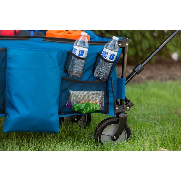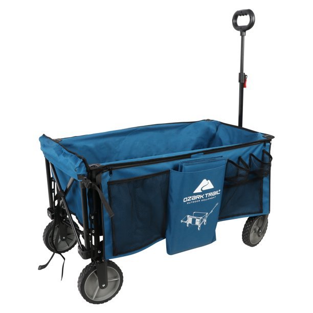 Haul all kinds of items easily and efficiently with this uniquely designed Blue Ozark Trail Wagon with Tailgate. Featuring a sturdy steel folding frame and a set of heavy-duty oversized 7-inch wheels for traversing a variety of terrain, this wagon can conveniently transport up to 225 pounds, and it features a handy and innovative folding tailgate that allows you to load and unload items effortlessly, as well as haul longer items. Once the wagon’s transported your load, it folds up into a compact size to pack into the back of a car or a garage without taking up too much space. This dependable wagon is great for tailgating, trips to the beach, camping, grocery shopping and more. For Adult use.