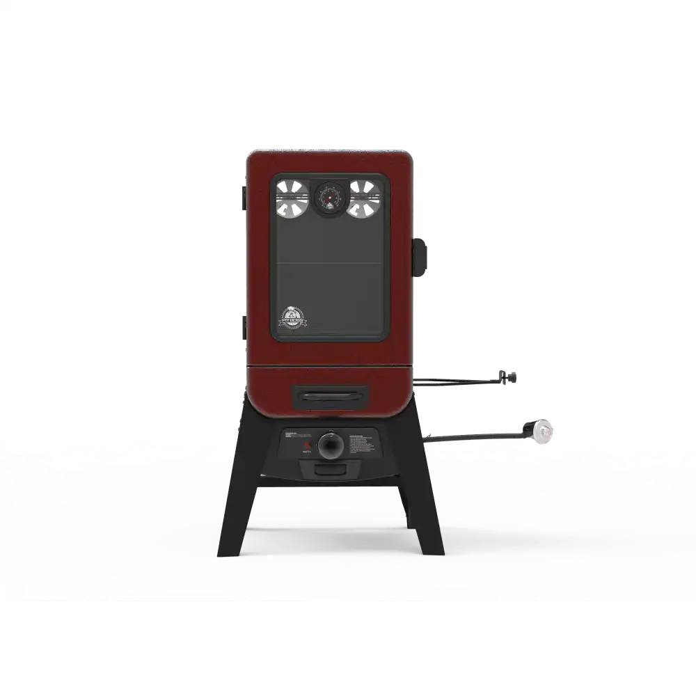 Experience how Pit Boss Grills is redefining the smoker industry with the 2-Series Vertical Gas Smoker. The large front window and door thermometer eliminate the need for peek-a-boo cooking. Master the ability to infuse flavor into your smoker with the oversized front load wood chip tray, offering up to 2 hours of cooking time per load and smoke like a pro from your own backyard. The PBV2G1 is built to last with a durable CRS high heat coating, a high temperature door seal, and our Pit Boss® best-in-class 5-year warranty. It’s time to take your backyard smoking experience to the next level with the Pit Boss Red Rock 2-Series Vertical Gas Smoker.