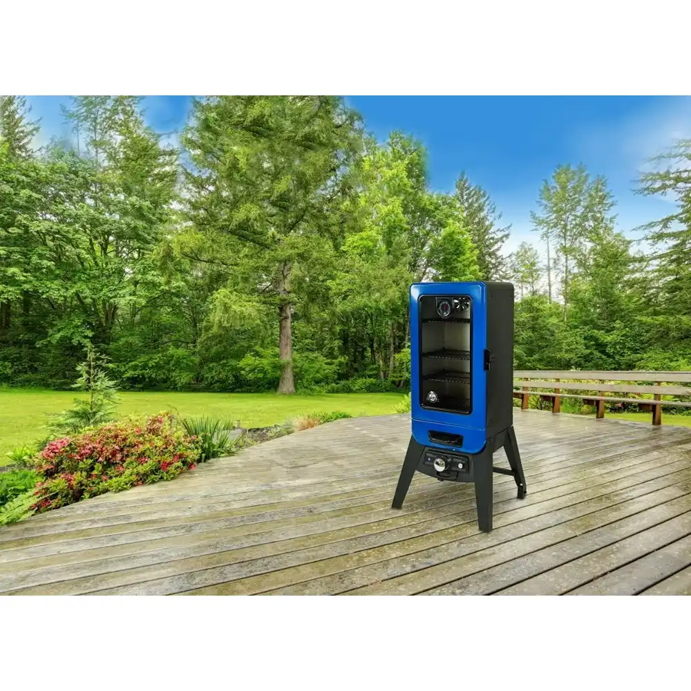 Integrated analog controls no more plugging and unplugging the controller,4 porcelain coated cooking racks,792 square inches of cooking space,External access front loading wood chip tray,Porcelain coated wood chip pan and water pan,Analog meat probe included,External grease pan,Adjustable air damper,2 rear caster wheels,Double-walled construction