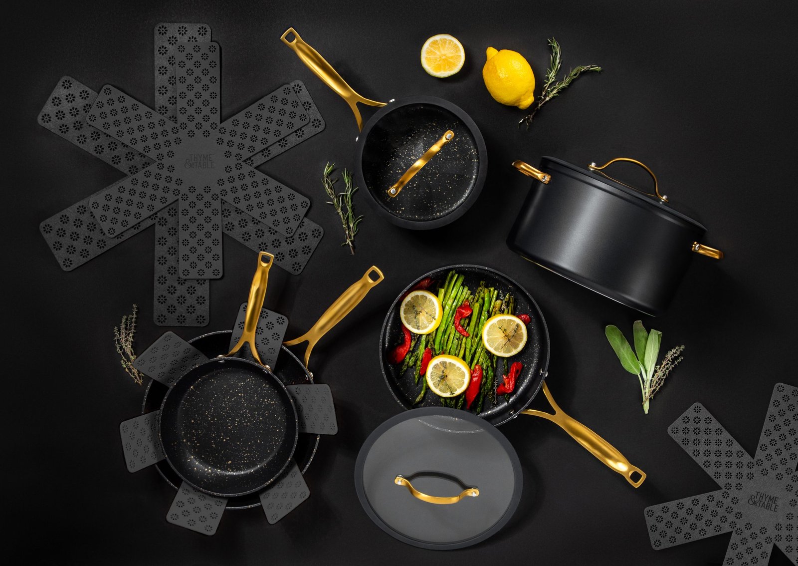 Thyme & Table Black and Gold Speckled 12 Piece Cookware Set