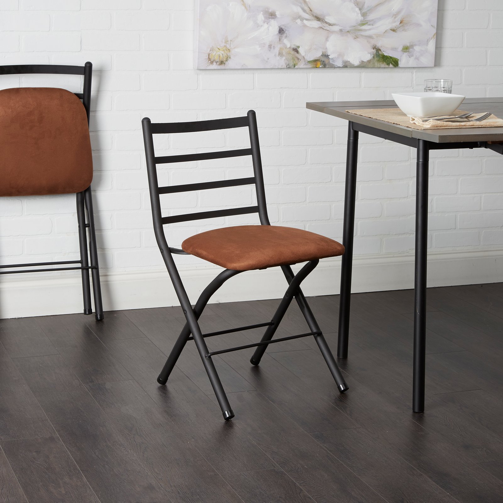 Mainstays Folding Ladder Back Chair, Microfiber seat 4 Pack