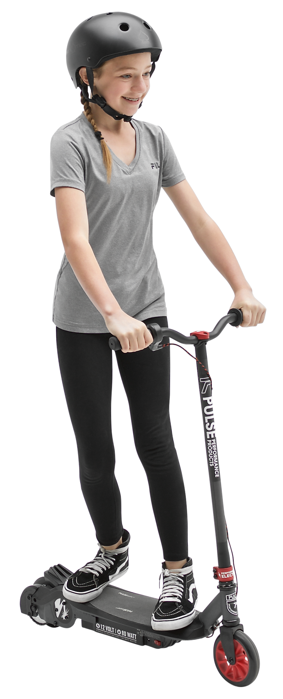 The REVSTER electric scooter delivers fun the instant you start riding! Perfect for kids stepping up from a kick scooter or those new to riding. Our Push-To-Go technology provides a smooth start and the extra grip deck adds stability. The REVSTER electric scooter gives the rider up to 45 minutes of continuous riding on a single charge. The maintenance free wheels are puncture proof, and the durable chain drive system transfers power efficiently for speeds up to 8 MPH. An integrated rear foot break has a motor power shut off that ensures quick and safe stopping, even if the thumb throttle is still pressed. You get 80 Watts of power, 12-Volt rechargeable battery, and long lasting vibrant graphics. Pulse Performance Products has been dedicated to scooter innovation since 2007. Beginning with the invention of the Kick ‘N Go performance scooter, our creative minds have continued to push the envelope and develop unique and exciting products such as the Slither Drift Scooter and a complete line of electric scooters for all age ranges. [PARAGRAPH RETURN] Each model offers a mix of style and technical development to ensure a safe, fun ride. All Pulse Performance scooters are eligible for complete customer service support and available replacement parts direct from the manufacturer. Pulse Performance Products takes pride in designing, testing and delivering the most epic scooters on the planet, because that’s what we do best.
