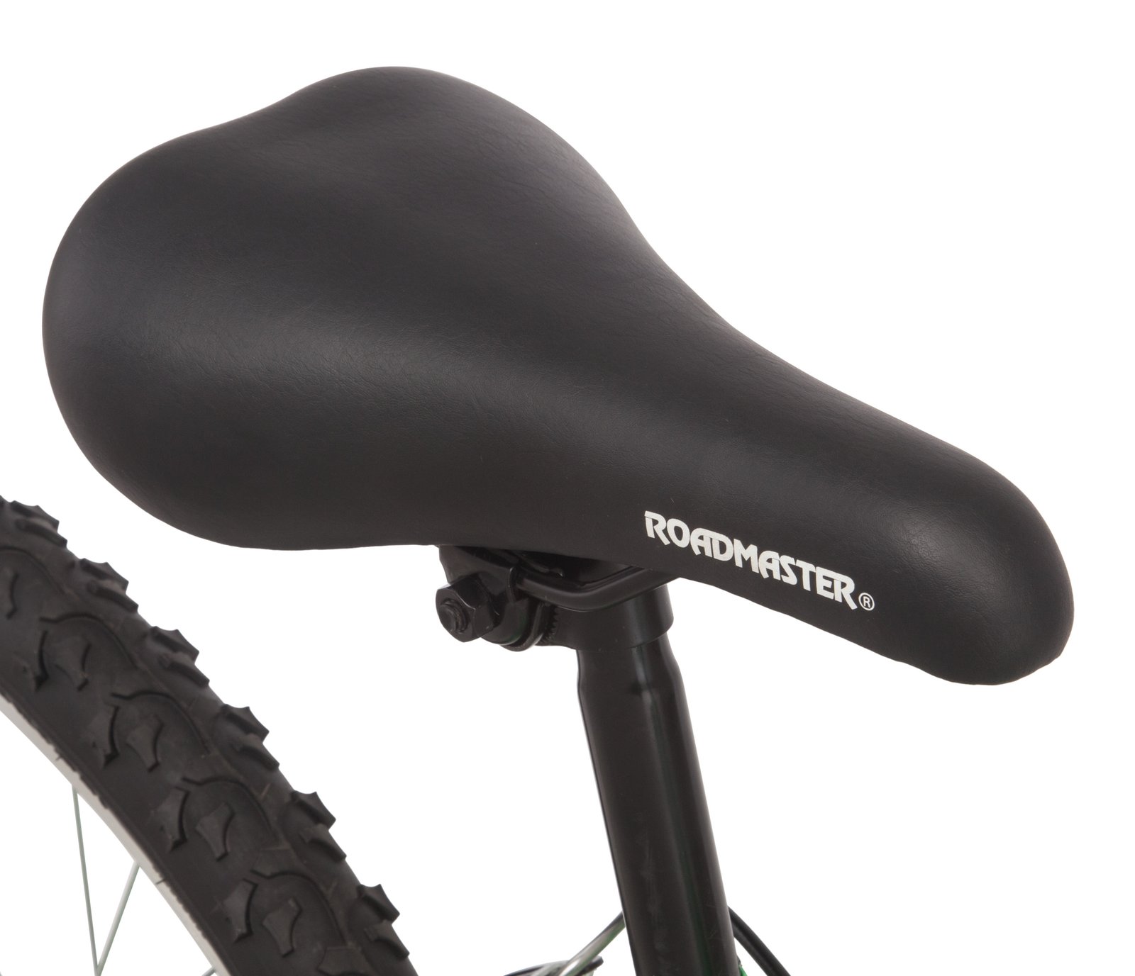 Roadmaster Granite Peak Mountain Bike, 24-inch wheels, Boys style, Green. The Granite Peak Mountain Bike by Roadmaster is an excellent all-around mountain bike that is right at home on a rugged unpaved path or cruising the streets in your neighborhood. It sports a steel mountain frame and a front suspension fork, ensuring that each ride is comfortable and easy to navigate. The knobby tire treads provide plenty of security on pavement or dirt roads, while alloy rims offer added durability and stability. This mountain bike comes with 18-speed twist shifters and a Shimano rear derailleur, allowing maximum shifting performance out on the trail. Experience the freedom of taking your Granite Peak all over town. Roadmaster has been a trusted American value in recreational bike riding for decades. Have some fun on your next ride. Great news! If you select Site to Store delivery, you can call your local store as complimentary assembly may be offered at that location.